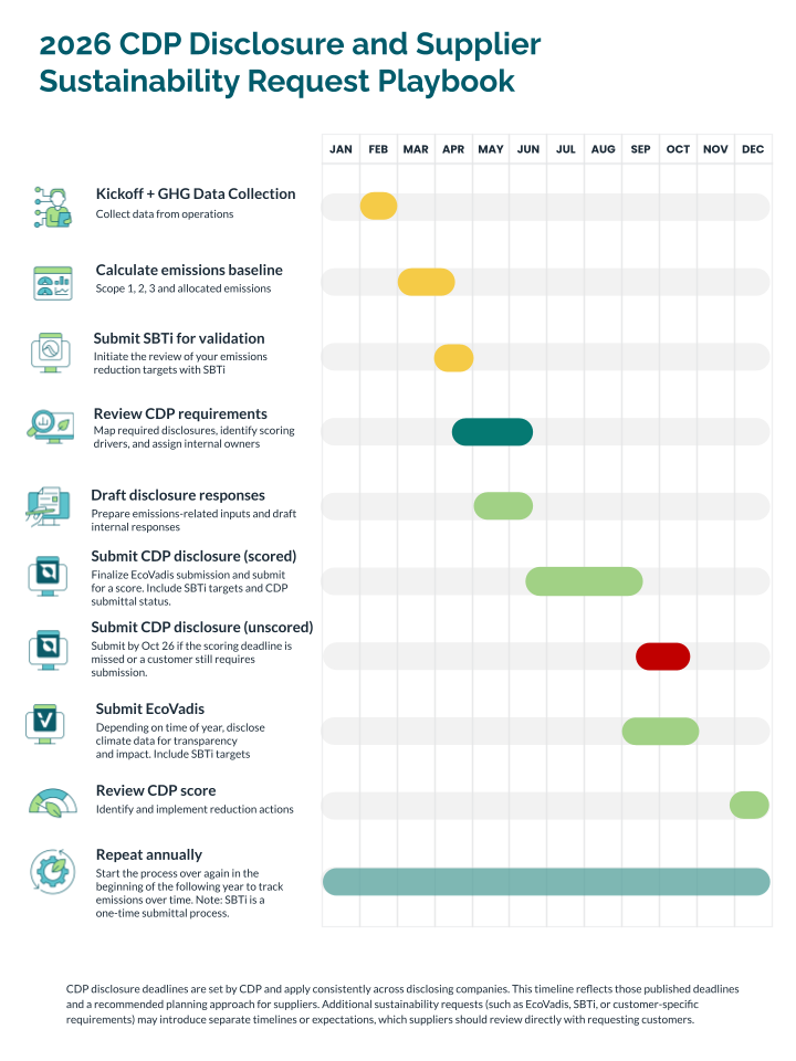 A high-level timeline aligned to CDP’s 2026 disclosure dates